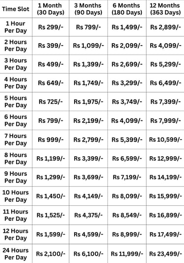 Explore our flexible package options tailored to your needs. Choose any duration that suits you.